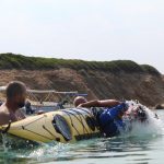 Отправяме се към плажа, където ще проведем инструктаж, запознаване с каяците и екипировката и свободно гребане, при което инструкторите ще преценят индивидуалните умения на участниците. Ще наблегнем на техниката при гребане.